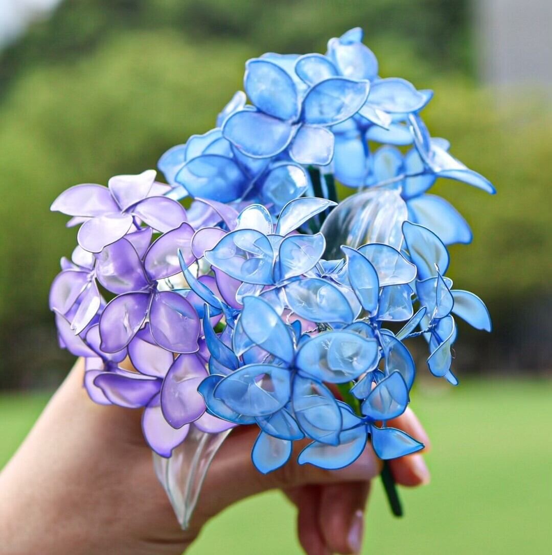 ひとつひとつ丁寧に花びらをハンドメイドし、繊細な紫陽花を表現しました。